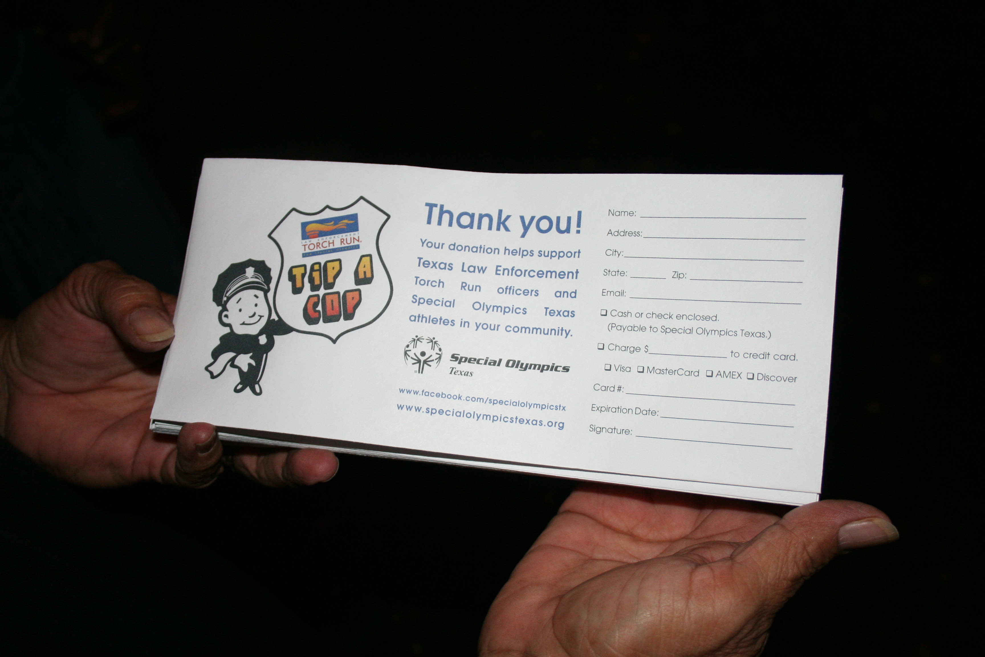 IMG_2184 July 26, 2012 3456 × 2304 Corpus Christi Police Raise Funds For Special Olympics These envelopes were distributed for the “Tip A Cop” event Thursday