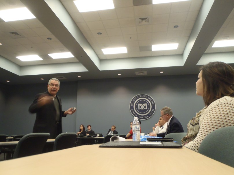 p9190302 September 19, 2012 4288 × 3216 Police Host Business Summit To Raise Awareness Lori Taylor learns personal safety information from Gilbert DeLaPortilla at the Business Summit held at the Del Mar College Center for Economic Development Wednesday