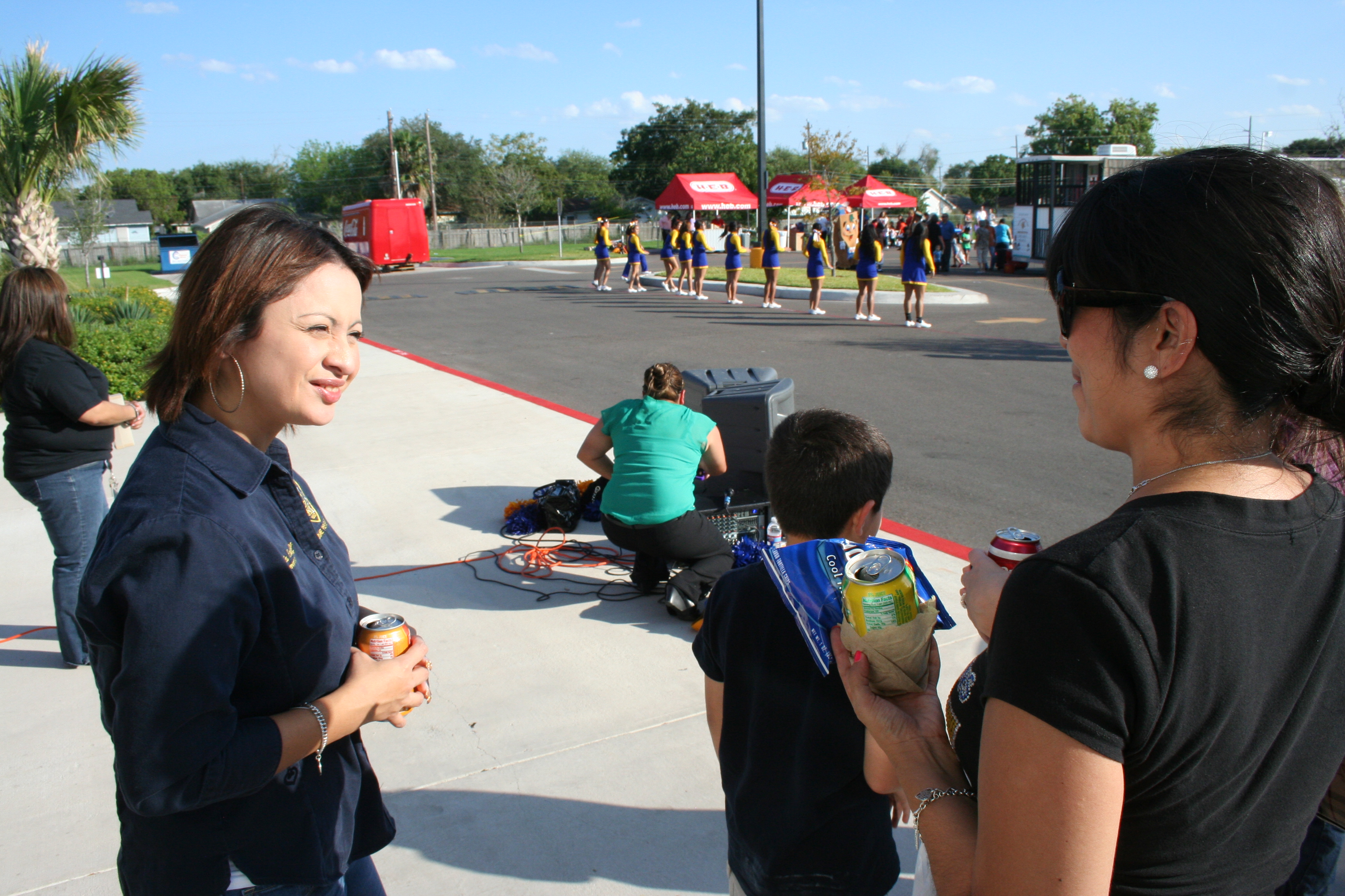 IMG_2689 October 3, 2012 3456 × 2304 Police Host 29th Annual National Night Out Corpus Christi Police Crime Prevention Advisor Brenda Moreno (left) speaks to a family at the National Night Out.