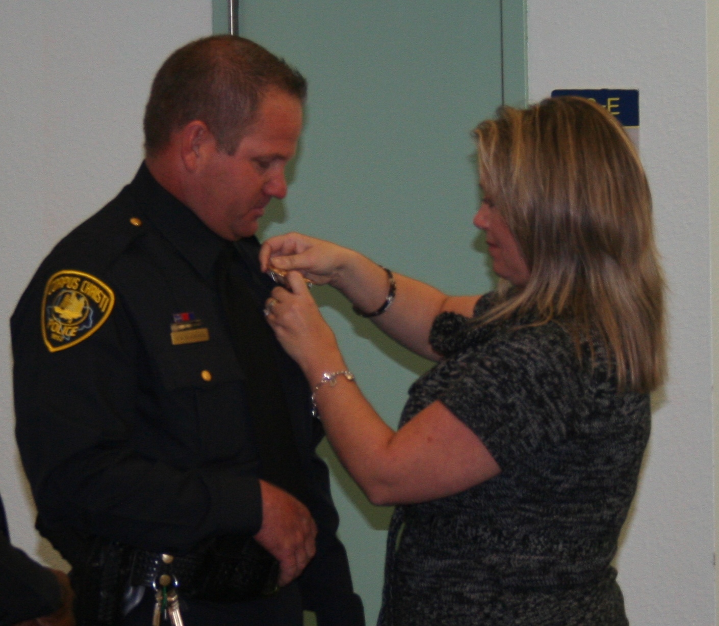 IMG_3315 November 13, 2012 1410 × 1229 Chief Promotes Blackmon To Captain Captain Blackmon has his rank pinned onto his collar by his wife, Brenda.