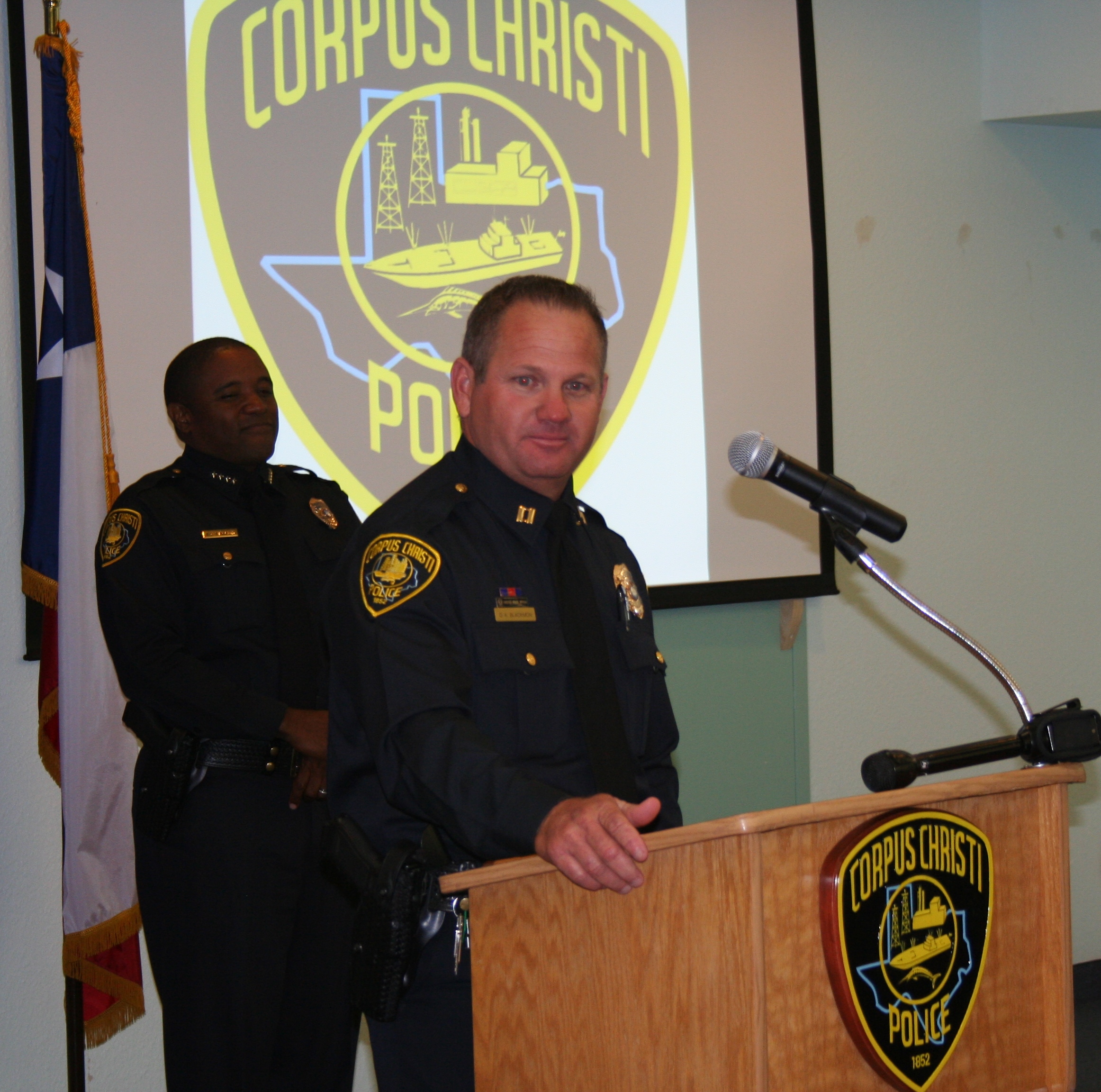 IMG_3319 November 13, 2012 2324 × 2304 Chief Promotes Blackmon To Captain Corpus Christi Police Chief Floyd Simpsonstands as Captain David Blackmon speaks at his promotion ceremony