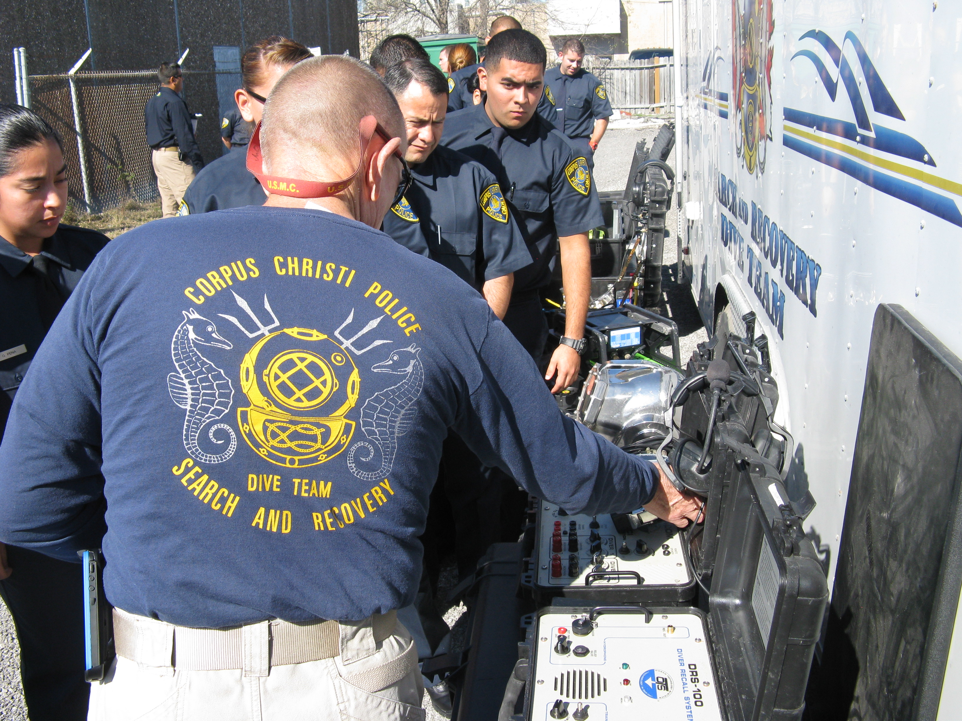 71st Academy ERU Presentation 182 February 15, 2013 3264 × 2448 Cadets learn about Emergency Response Unit Resources #CCPD71 Senior Officer James Didear of the Corpus Christi Police Dive Team shows Police Cadets the equipment used for submerged opererations