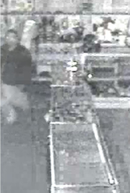 Detectives obtained video of the man who paced in front of the store at about 1:18am on Monday, April 15, 2013. The man passed by the window a couple times and then broke the window. The man ran inside the store, took some merchandise, and then left.
