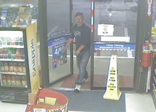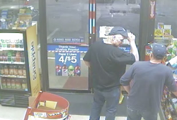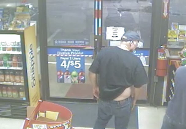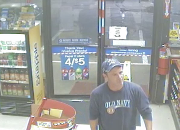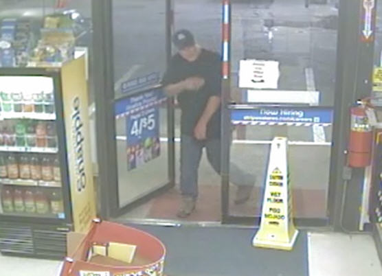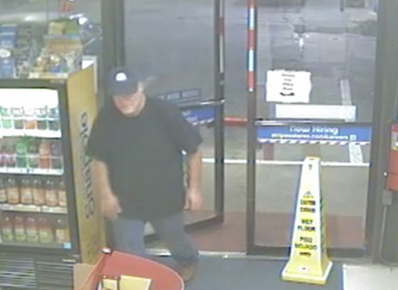 The other suspect is described as a white male about 6 feet tall, gray hair, and wore a blue cap, black short sleeve T-shirt, blue jeans, and brown shoes.