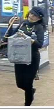 The suspects arrived at the Wal-Mart Store located at 3829 Highway 77 at 5:40 PM in a silver four door passenger car. About 25 minutes later a black female wearing all black with glasses, made purchases totaling over $210 using two counterfeit $100 bills.