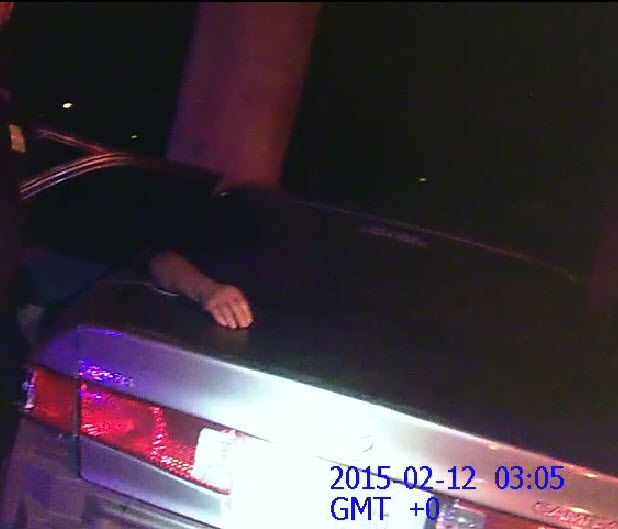 A view from an officer body camera of the prosthetic arm left behind by the driver of this vehicle. He was later located and arrested.