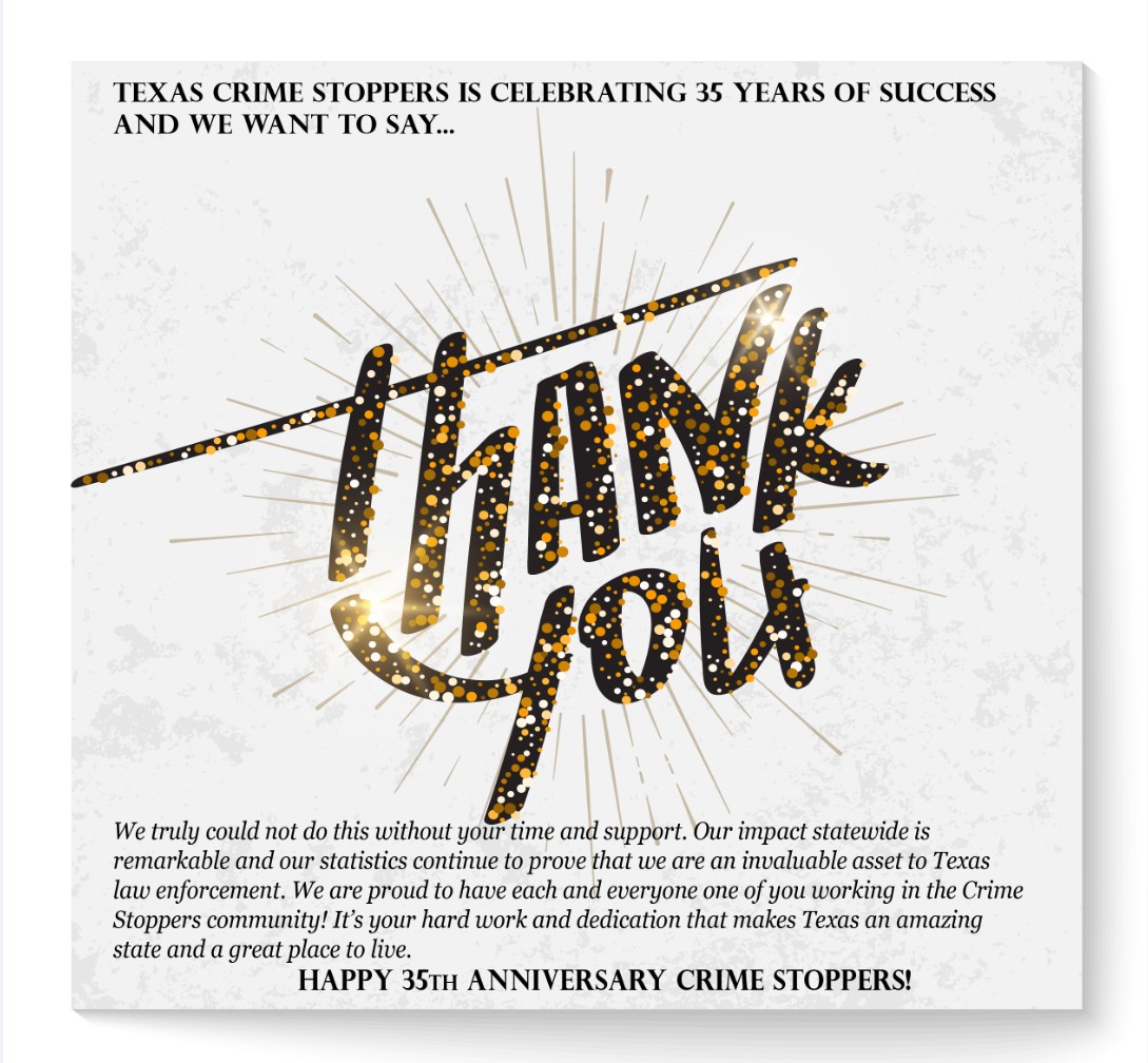 Texas Crime Stoppers 35th Anniversary June 8, 2016 1089 × 1008 Crime Stoppers Celebrates 35 Years In Texas