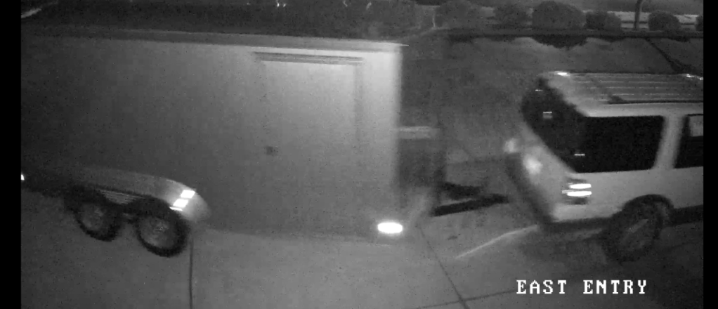Still images from the surveillance footage shows the suspects that stole the trailer. The suspects left the scene in what appears to be an older model, light in color, Ford Expedition.