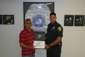 “The welfare of my officers and their families comes first,” said Hill who received a safety award from the City of Corpus Christi for his supervision of his patrol shift and his efforts to ensure the safety of his patrol officers.