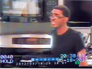 The man then got into a 1998 gray Saturn 4 door car and left. Police obtained the license plate number for the vehicle and have video recording of the man. The man is described as a black male, 20-25 years of age, about 6 feet tall and about 170 pounds. The man has black hair and brown eyes and wore glasses, had a thin mustache, and wore a black t-shirt.